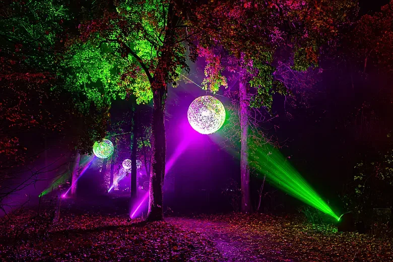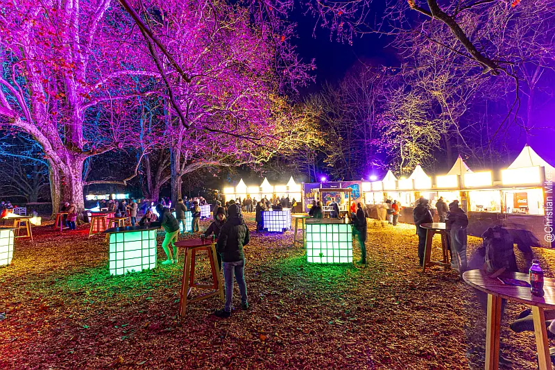 Der Schlosspark Laxenburg verwandelt sich ab Einbruch der Dämmerung in eine leuchtende Fantasiewelt und verspricht ein magisches Erlebnis für Groß und Klein.