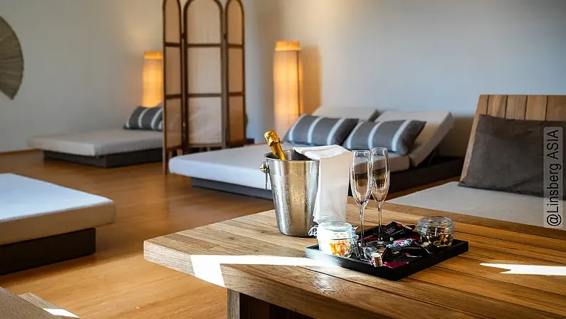 Ergeben Sie sich der Muße! Im großzügig angelegten Thermalbadebereich des Thermenresorts Linsberg ASIA südlich von Wien finden Sie die Ruhe und Erholung, die Sie sich schon lange gewünscht haben. Treten Sie ein und finden Sie Ihr kleines Glück im 35°C warmen Heil- und Thermalwasser – umgeben von fernöstlich inspiriertem Asia-Feeling.